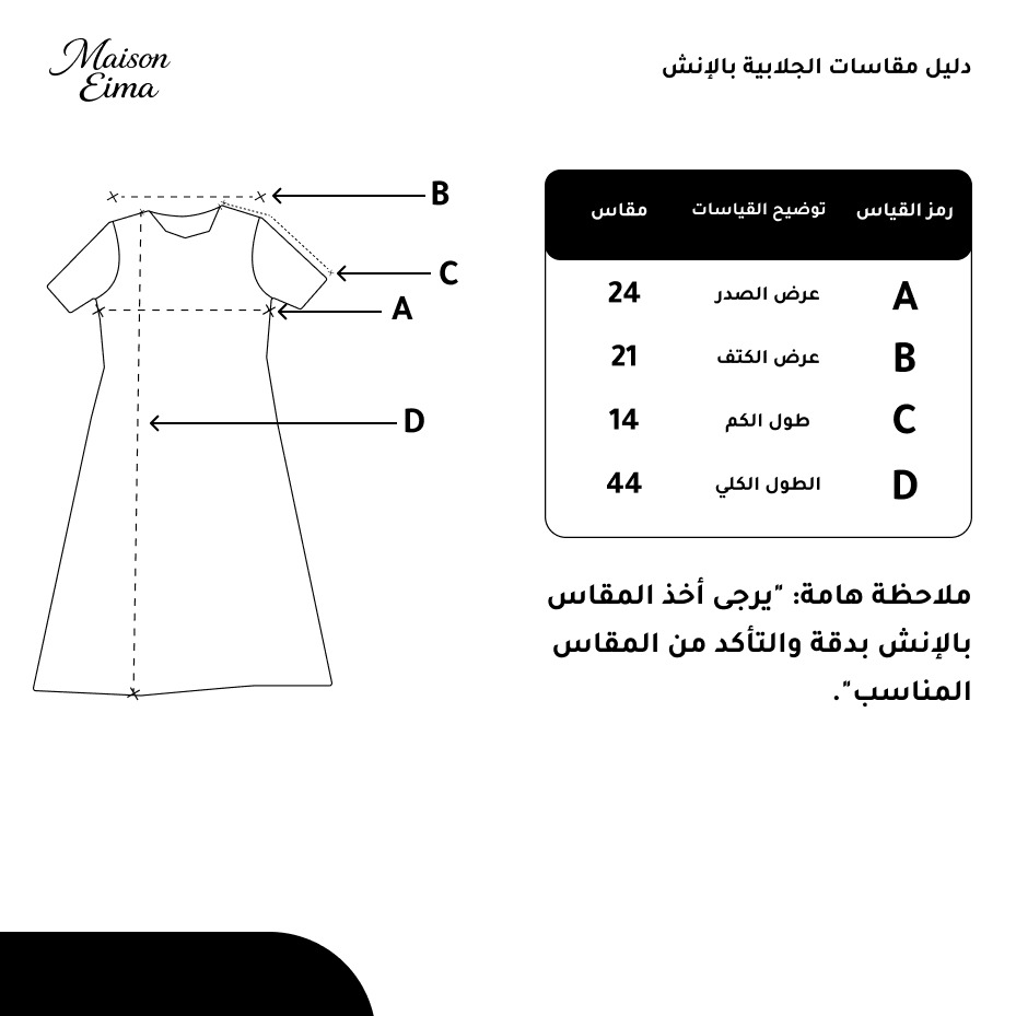 • يفضل غسل الجلابية يدويًا أو بالتنظيف الجاف للحفاظ على جودة القماش.